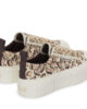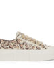 Klassisk Superga-styling möter influenser från moderna arbetskläder. Tillverkad av tryckt bomull och kännetecknas av en robust konstruktion: tån är förstärkt med en randig gummihätta, medan den extra tjocka sulan stöder foten och ger ökat motstånd. Låg modell Tryckt bomullsovandel Ovandel i bomull Ofodrad 4 cm flatform-sula Tvåfärgad jacquard-logotyp på sidan Tryckt logotyp på baksidan och innersulan Logotypgraverade aluminiumöljetter Bomullssnören Vulkaniserad naturgummisula