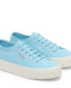 Utvecklingen av en ikon. Dessa Superga 2740-sneakers lyfter fram den karaktäristiska silhuetten med en 3,5 cm flatform-sula. En lätt och bekväm, smickrande detalj som är trogen märkets design-DNA. Tillverkade med ovandel i bomullscanvas och yttersula i vulkaniserat naturgummi.