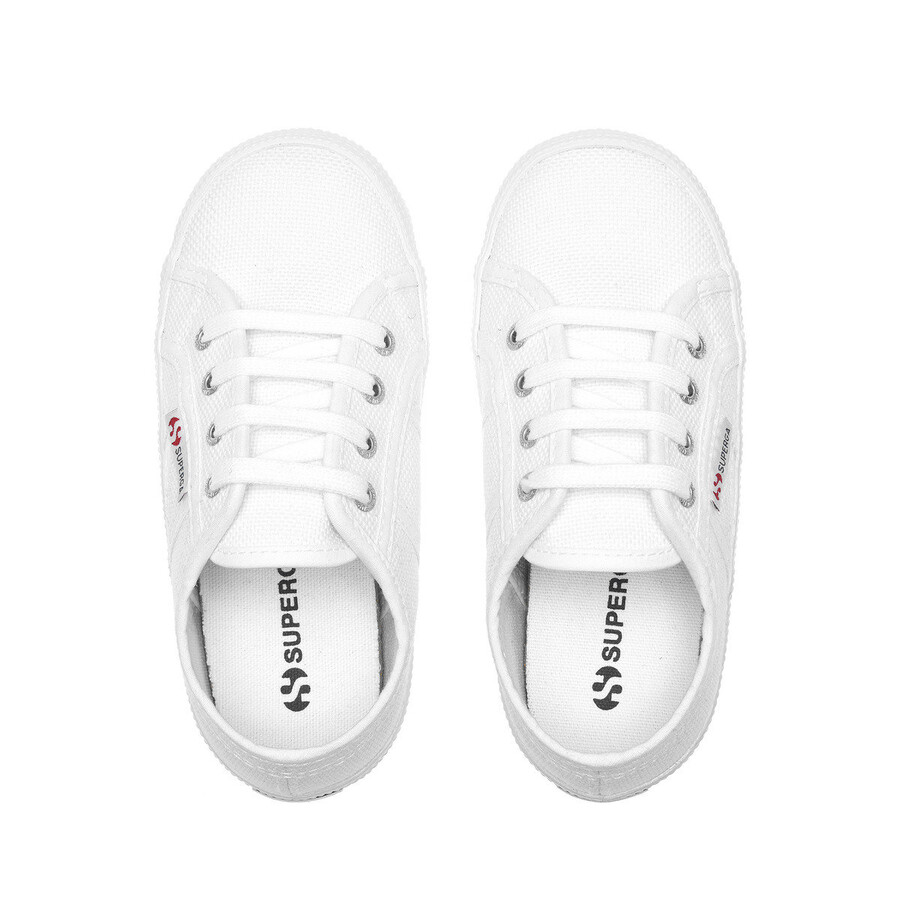 En symbol för italienskt hantverk, en livsstilsikon och ett sommarmust-have, omarbetad till en ultralätt mini-me-design. Junior Superga 2750 i Easylite-format kännetecknas av en klassisk, ventilerande bomullsovandel, uppdaterad med lättare rävmönster runt sulan för en ännu bekvämare passform. Ventilerande bomullscanvas-ovandel Ofodrad Tvåfärgad jacquard-logotypetikett på sidan Lättare rävmönster Tryckt logotyp på baksidan och innersulan Skosnören Vulkaniserad naturgummisula Ett par läderinlägg ingår i paketet