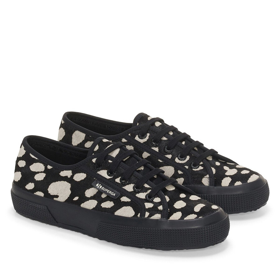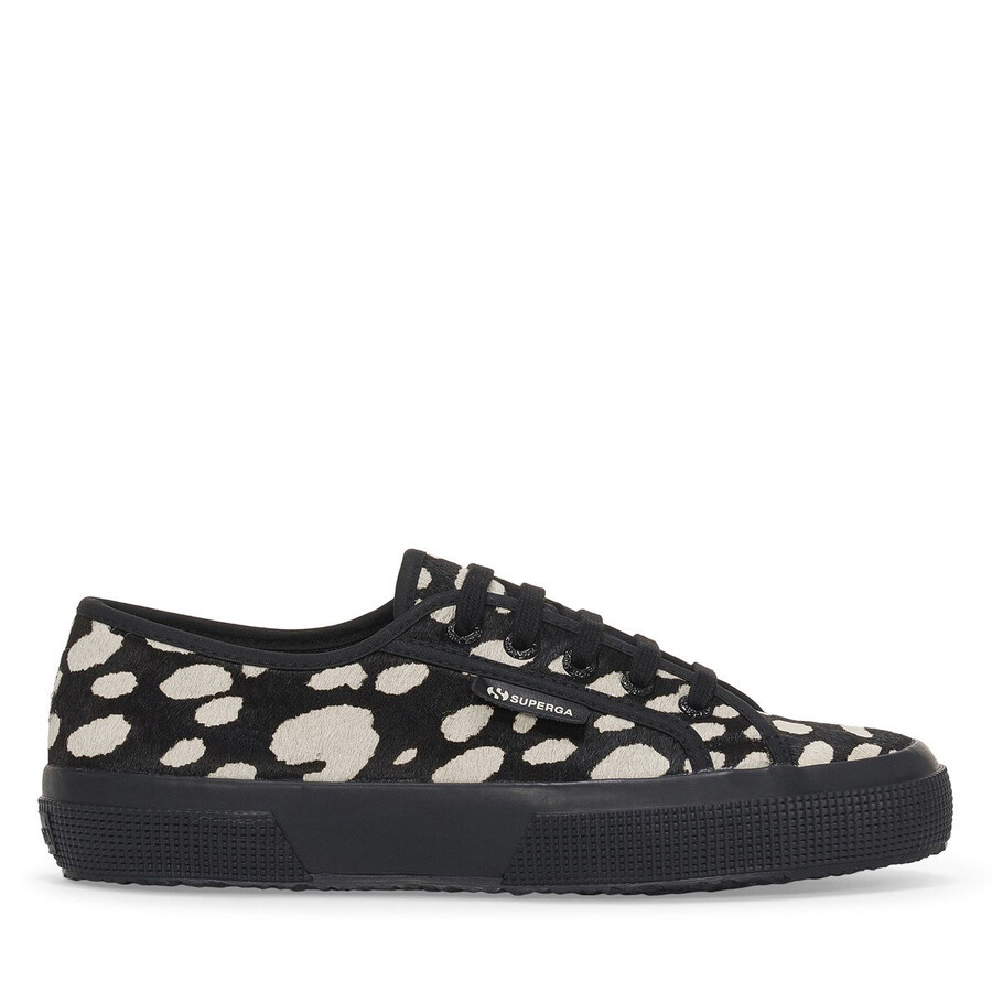 Stick ut i Superga 2750 Dalmatian Ponyhair Trainer, med en djärv, iögonfallande ovandel i tryckt ponnyhår. Med bomullskanter och ett mjukt mikrofiberfoder erbjuder dessa träningsskor både stil och komfort. Den klassiska vulkaniserade naturgummisulan garanterar hållbarhet, vilket gör detta par till ett lekfullt men sofistikerat tillskott till din samling. Tryckt ponnyhårsovandel. Mjukt mikrofiberfoder för extra komfort. Slitstark yttersula i vulkaniserat naturgummi. Bomullskanter för en ren, polerad finish. Superga-flik på sidan och hälen. Superga-präglade öljetter.