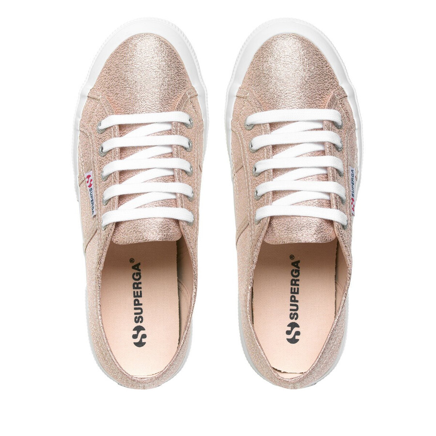 Superga 2750 Lamew – Stråla i våra omgjorda klassiska 2750-skor. Dessa extra starka, ofodrade och helt andningsbara skor är tillverkade av ren bomull och har en yta i ett laméfärgat, glänsande metalliskt tyg. Ovandel i premiumcanvasVulkaniserad gummisulaSuperga-flik på sidan och hälenSuperga-präglade öljetter