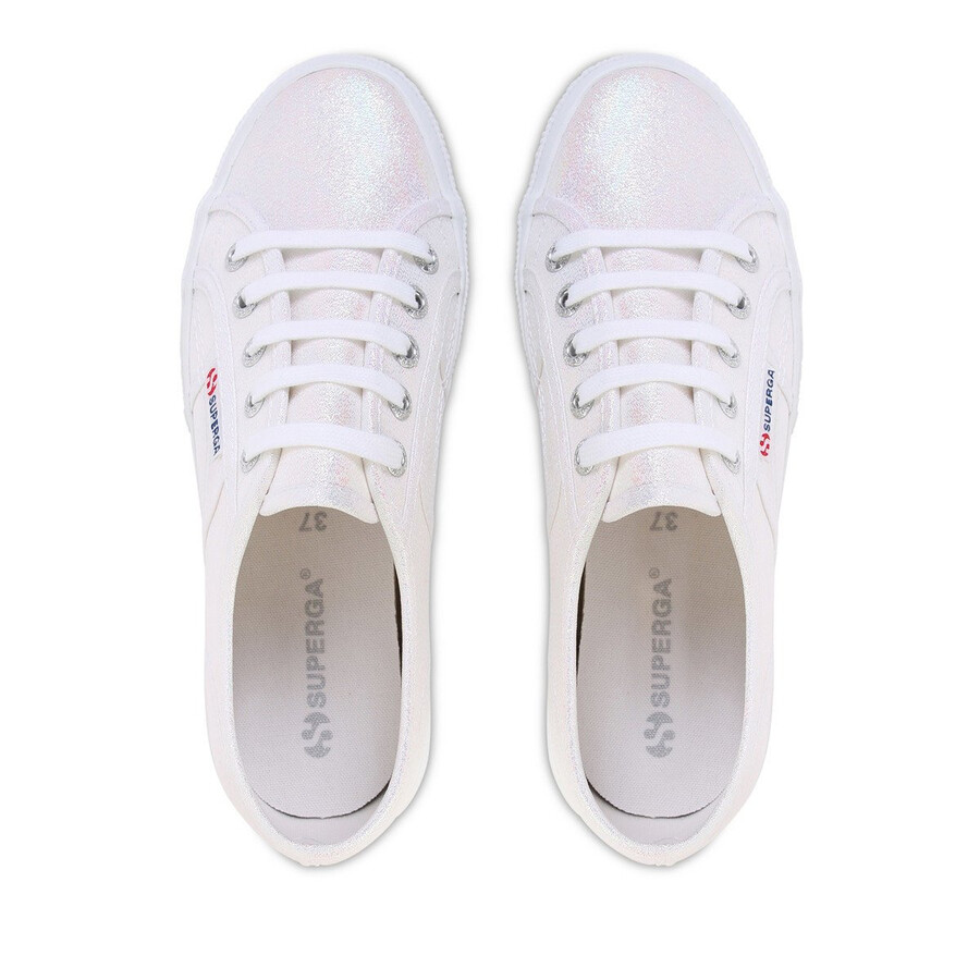 Superga 2750 Lamew – Stråla i våra omgjorda klassiska 2750-skor. Dessa extra starka, ofodrade och helt andningsbara skor är tillverkade av ren bomull och har en yta i ett laméfärgat, glänsande metalliskt tyg. Ovandel i premiumcanvasVulkaniserad gummisulaSuperga-flik på sidan och hälenSuperga-präglade öljetter
