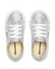 Precis som vuxenskon har Superga 2750 Lamé metalltråd invävd i vår starka bomullscanvas, vilket gör att skon andas. SnörningOvandel i premiumcanvas med invävd metalltrådVulkaniserad gummisulaSuperga-flik på sidan och hälen