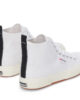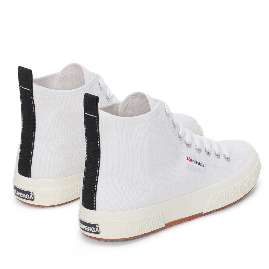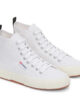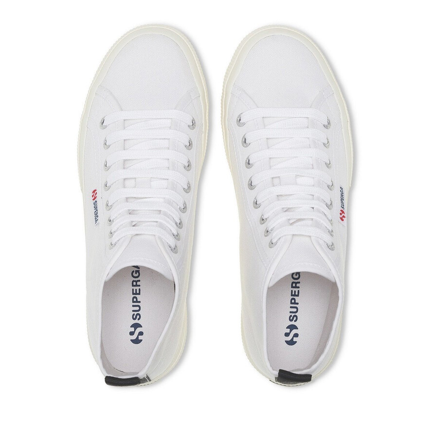 Tidlös mellanhög silhuett av Superga 2750 med ovandel i bomullscanvas som omfamnar och stöder vristen, foder i bomull och ryggband i grov narv. Jacquard-logotypen och märkets originalvulkaniserade gummisula ger en distinkt finish. Mellanhög design Andningsbar ovandel i bomullscanvas Bomullsfoder Tvåfärgad jacquard-logotyp på sidan Logotyptryckt bakhäl och innersula Logotypgraverade aluminiumöljetter Bomullssnören Vulkaniserad naturgummisula