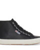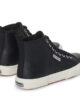 Tidlös mellanhög silhuett av Superga 2750 med ofodrad läderovandel som omsluter och stöder fotleden. Mellanhög designOfodrad läderovandelTvåfärgad jacquard-logotyp på sidanLogograverade aluminiumöljetterBomullssnörenVulkaniserad naturgummisula