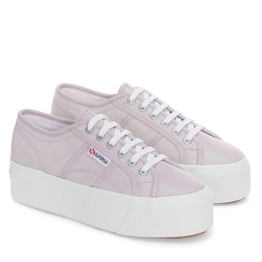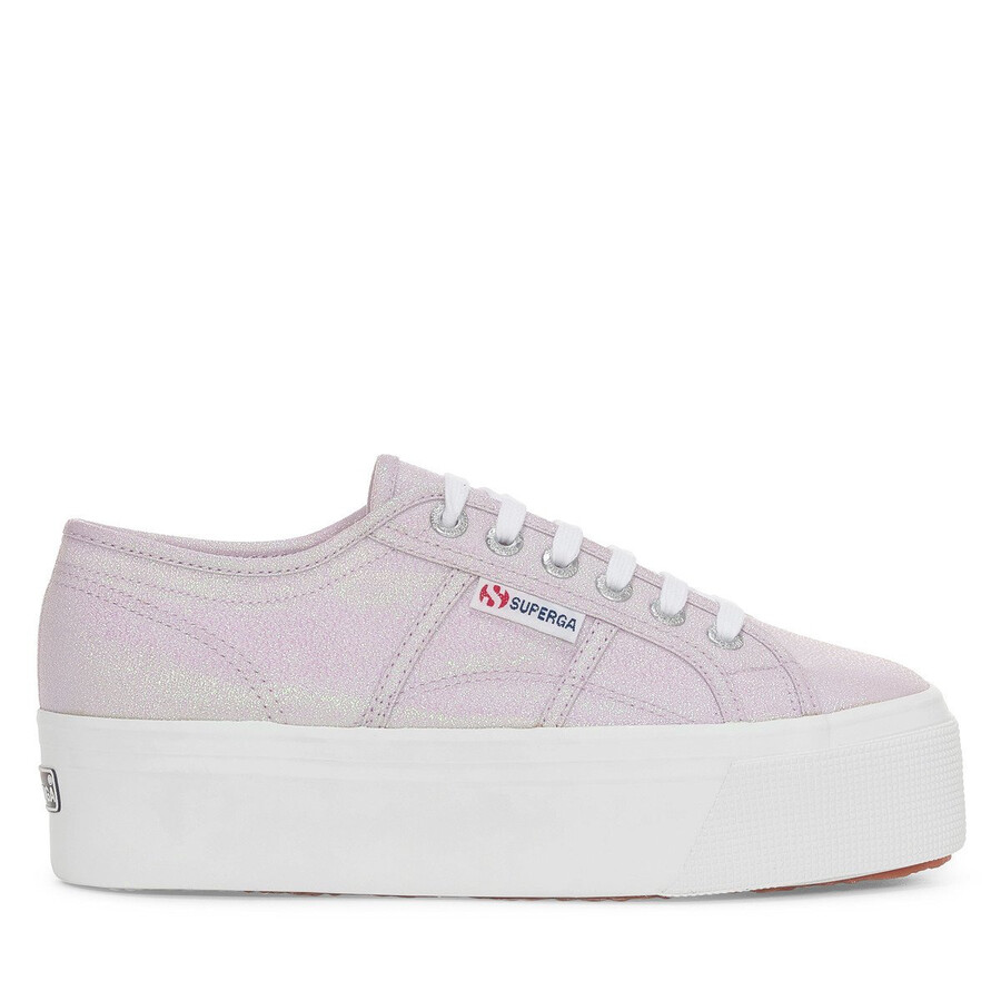 Superga 2790 Lamew – Stråla i våra omgjorda klassiska 2790-skor. Dessa extra starka, ofodrade och helt andningsbara skor är tillverkade av ren bomull och har en yta i ett laméfärgat, glänsande metalliskt tyg. Ovandel i premiumcanvas. Grov vulkaniserad 4 cm gummisula. Superga-flik på sidan och hälen. Präglade Superga-öljetter.