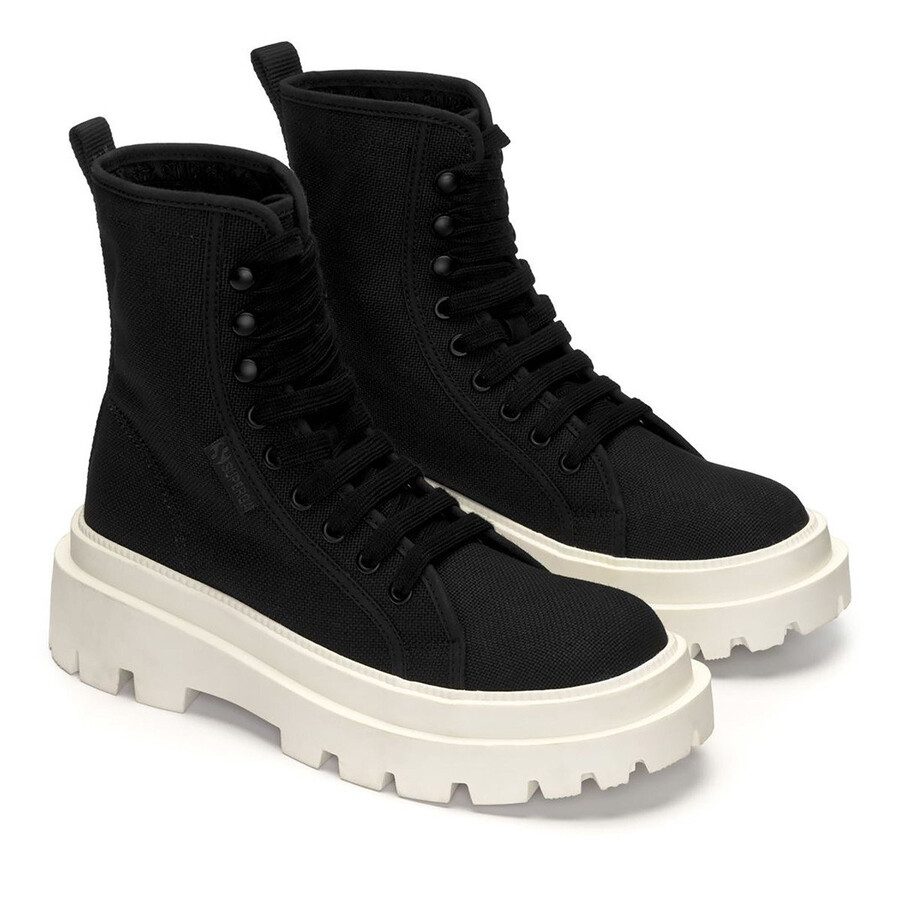 Dessa stövlar omarbetar den ikoniska Alpina-stilen med en 6 cm tjock gummisula, som bibehåller den klassiska dragningskraften hos sin omslutande höga ovandel tillverkad av andningsbar bomullscanvas. Utsmyckade med en bakre dragflik och metallhakar som en tidlös blinkning till klassiska vandringskoder. Detta är en canvassko. High-top design. Slitstark ovandel i bomullscanvas. Ofodrad Jacquard-logotypetikett på sidan. Logotyptryck på hälen och innersulan. Aluminiumöljetter och hakar. Bomullssnören. Platåsula. 6 cm Alpina gummisula.
