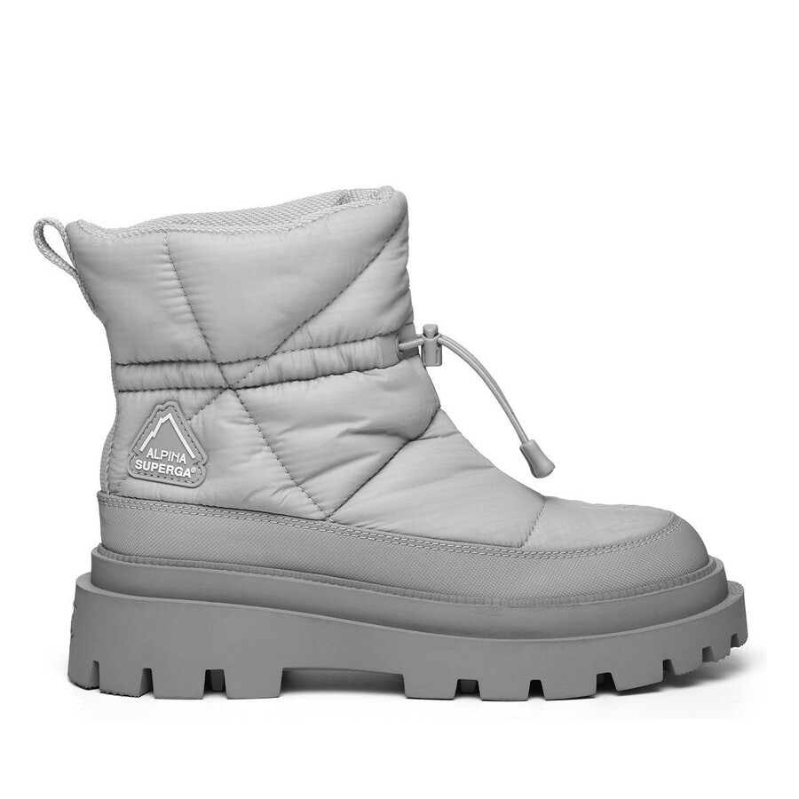 Den nya Alpina Apex Padded hyllar Supergas historia och ger den en ny look med en rejäl men ändå mysig stil. Modellen har en 6 cm gummisula, en ovandel i ripstopnylon med innerstoppning, en sidoinsats i tyget och en hög silhuett med en Alpina-logotyp i silikon på utsidan. Hällan på baksidan och den justerbara elastiska snörningen påminner om designen hos klassiska afterski-pjäxor. Hög designVadderad ovandel i nylonMeshfoderSilikon Alpina-logotyp på sidanSuperga-logotyp på häl och innersulaJusterbar dragskostängningSulhöjd: 6 cmVulkaniserad naturgummisula