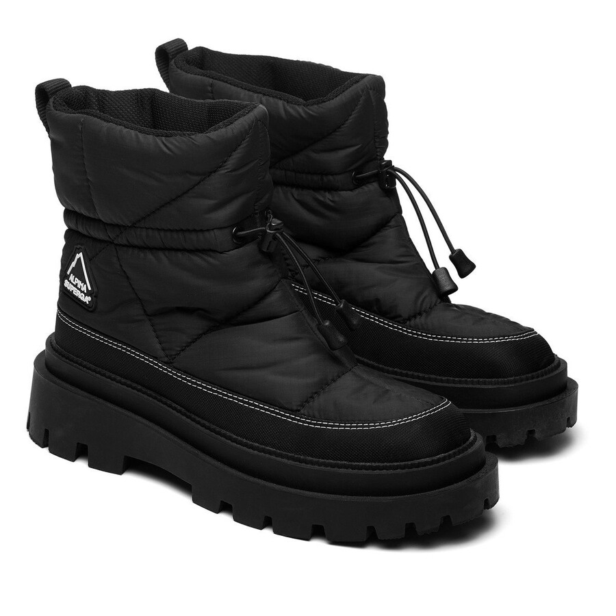 Den nya Alpina Apex Padded hyllar Supergas historia och ger den en ny look med en rejäl men ändå mysig stil. Modellen har en 6 cm gummisula, en ovandel i ripstopnylon med innerstoppning, en sidoinsats i tyget och en hög silhuett med en Alpina-logotyp i silikon på utsidan. Hällan på baksidan och den justerbara elastiska snörningen påminner om designen hos klassiska afterski-pjäxor. Hög designVadderad ovandel i nylonMeshfoderSilikon Alpina-logotyp på sidanSuperga-logotyp på häl och innersulaJusterbar dragskostängningSulhöjd: 6 cmVulkaniserad naturgummisula
