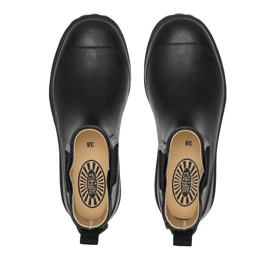 Dessa mellanhöga stövlar är perfekta för både stan och landsbygden och ger den klassiska Chelsea-silhuetten en modern twist – tack vare den robusta gummiovandeln och Supergas signatur Alpina-sula. De elastiska sidoinsatserna och tejpen baktill gör dem enkla att ta på och av. Mellanhög modell Ovandel i gummi Foder i bomull Dragflik i grov narv på baksidan av hälen Solstrålelogotyp fram Alpina gummisula Elastiska sidoinsatser